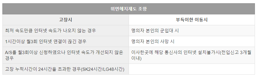 초고속 인터넷 약정 후반부 위약금 대폭 인하 보도 자료