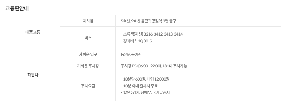 6) 대중교통 및 자가로 이동시 아래에 있는 교통편을 참고하세요.